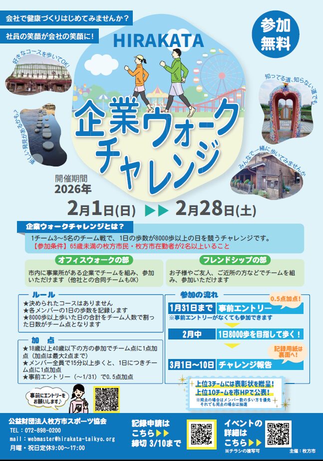枚方市内の事業所と合同チームを組めばオフィスウォークの部でエントリー可能です。