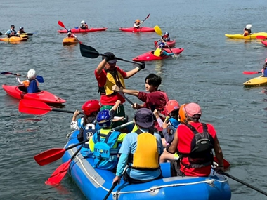 ラフティングはみんなで息を合わせて漕ぐから、一体感がぐっと増すね。 「いち!に!いち!に!」と声を合わせながら進む姿、頼もしかったな~。